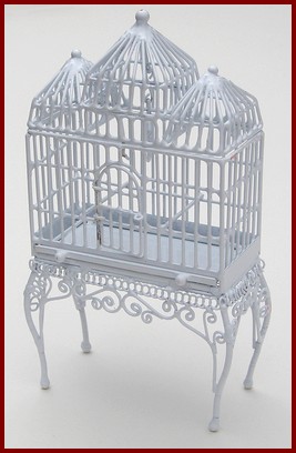 White wire Victorian style bird cage just right for one of our colourful parrots
