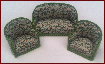 Twenty-fourth scale hand made three piece suite in floral pattern