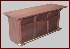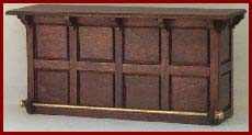 Hand made and polished bar counter with inset panelling as item PF006 above, brass foot rail