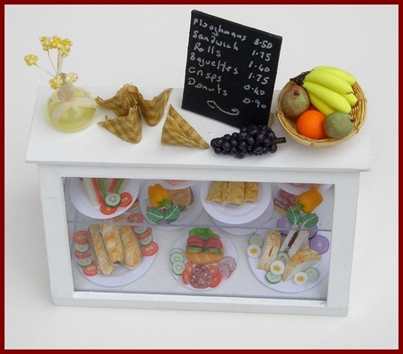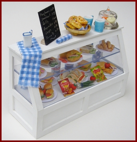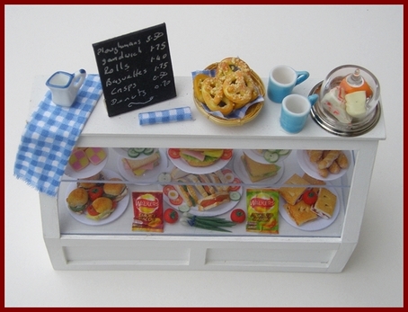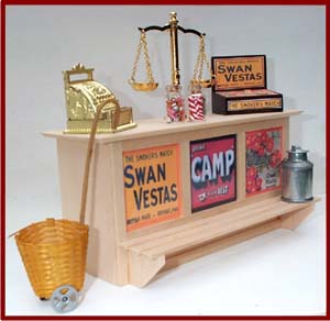 Counters, display units and shelves for all kinds of dolls house shop.